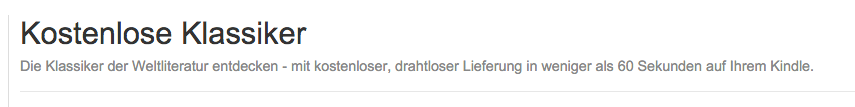 Lesen auf dem Kindle ist, in meinen Augen, wesentlich angenehmer als z.B. über’s iPad. Beim Stöbern bin ich jetzt auf eine lange Liste kostenloser Kindle-Books gestoßen, die Amazon zur Verfügung stellt: Amazon kostenlose eBooks. Unter den Büchern sind viele Klassiker der Weltliteratur..
